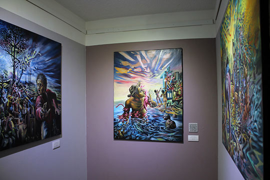 En esta exposición también podemos admirar cuatro obras surrealistas de Jorge Domínguez, artista autodidacta de Chontla Veracruz, que pinta con un estilo desbordante de imágenes oníricas y fantasiosas.